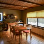 この絵になるアンティークのテーブル、手触りも見た目も重厚感があります。もともとは昔のお屋敷の扉だとか。どうりで矢も通さないような分厚さだわ。これは夜では気づかなかったな。